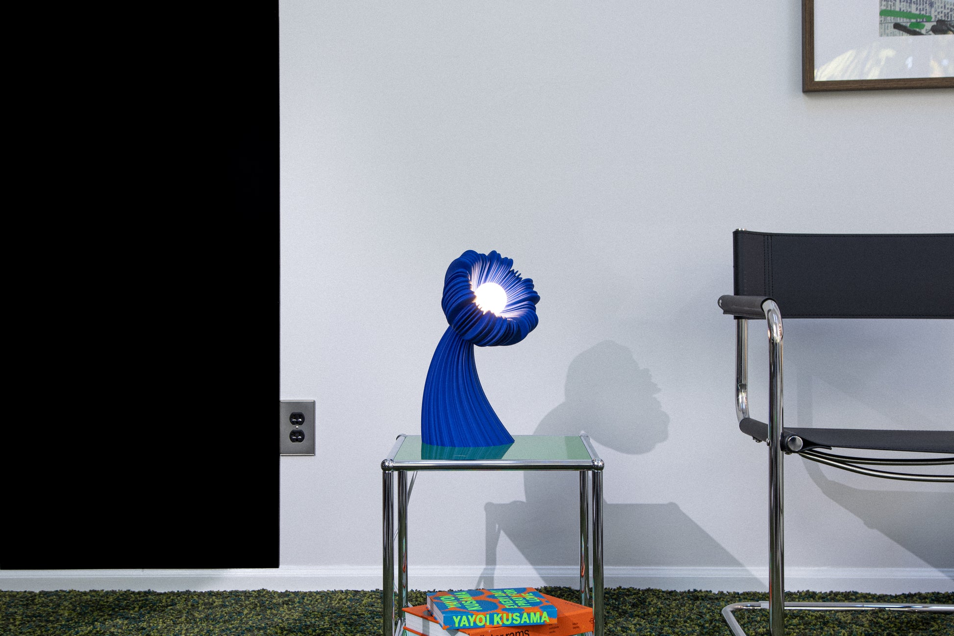 To reduce waste and rethink material impact, our blue and black editions are printed with recycled PLA and carbon-infused recycled PLA. These reclaimed materials naturally shift the lamp’s expression, making it less translucent and giving it a more still, sculptural presence. The form becomes more solid and defined, with deeper color saturation and a moodier, more contemporary character compared to the airy glow of the original white Poppy.